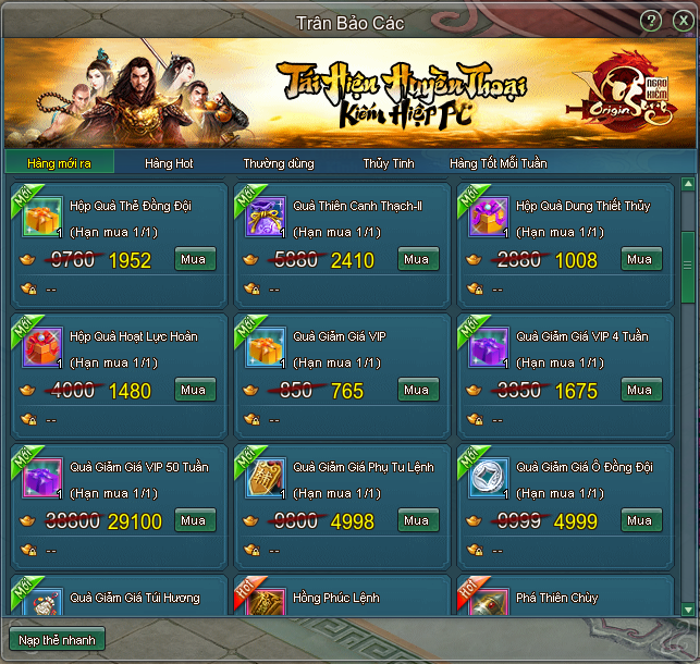 BQT Ngạo Kiếm Vô Song Origin dành tặng quý Đại Hiệp các vật phẩm được ưu đãi giảm giá hấp dẫn tại Trân Bảo Các, đừng bỏ qua!