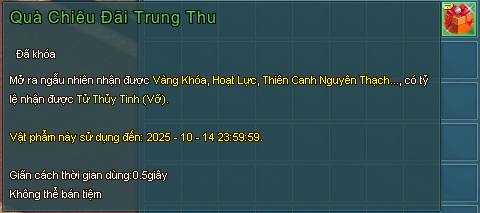 - Mở "Quà Chiêu Đãi Trung Thu nhận ngẫu nhiên các vật phẩm có trong danh sách: