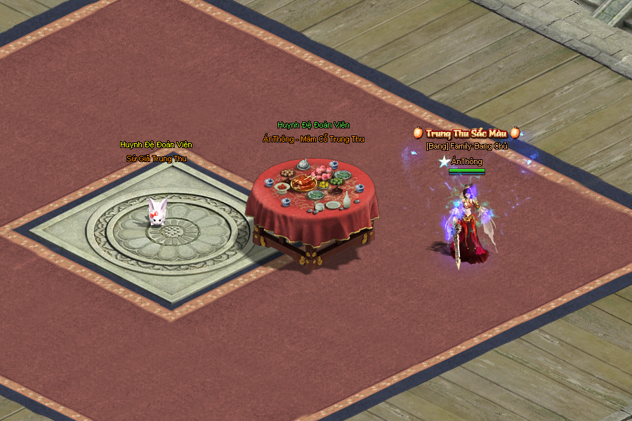 - Tại bản đồ Thuộc Địa Gia Tộc, khi người chơi nhấn dùng vật phẩm "Mâm Cỗ" thì tại vị trí đứng sẽ xuất hiện 1 Mâm Cỗ Trung Thu.
